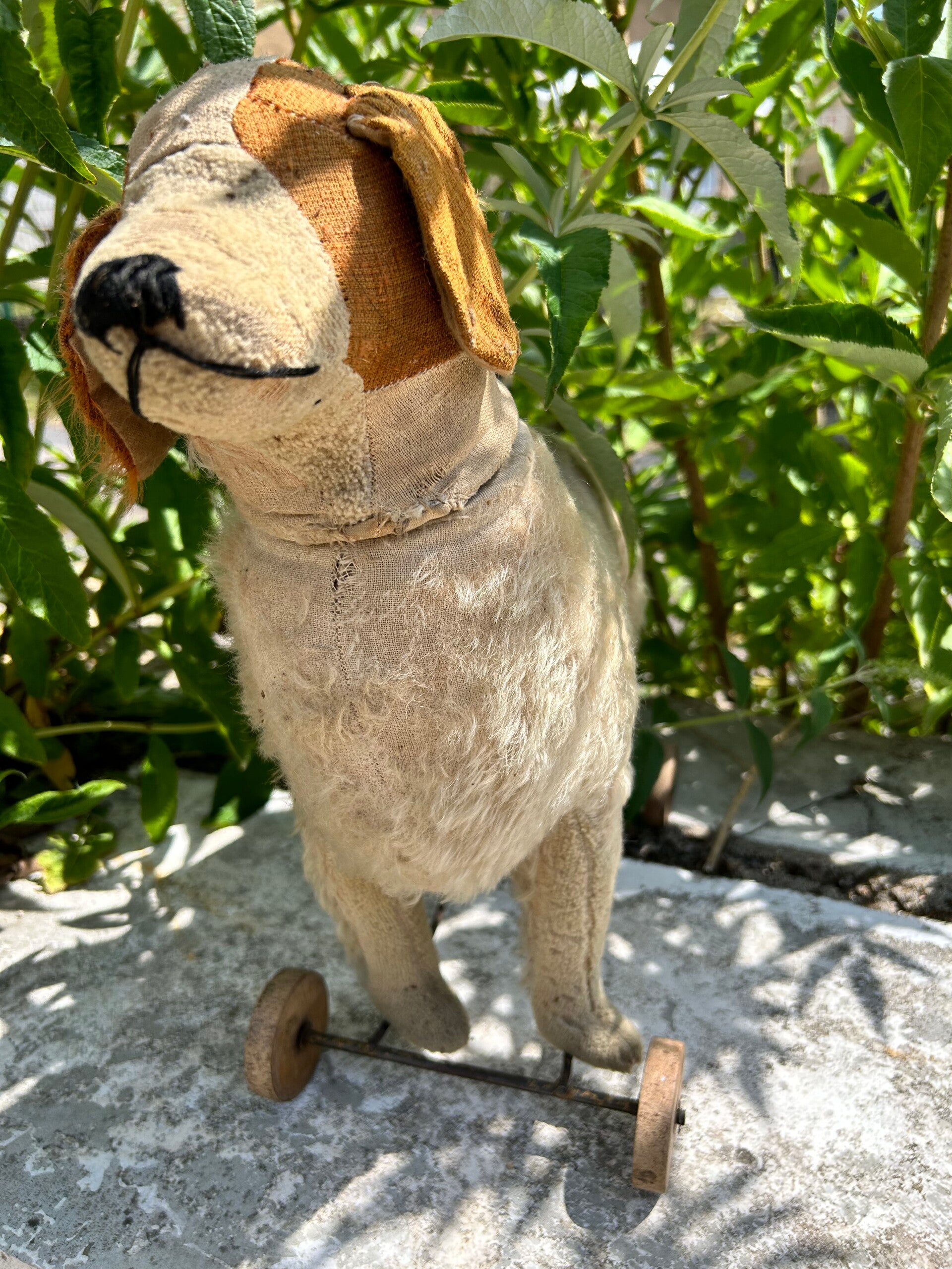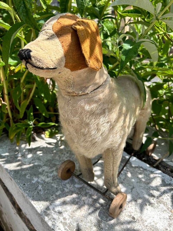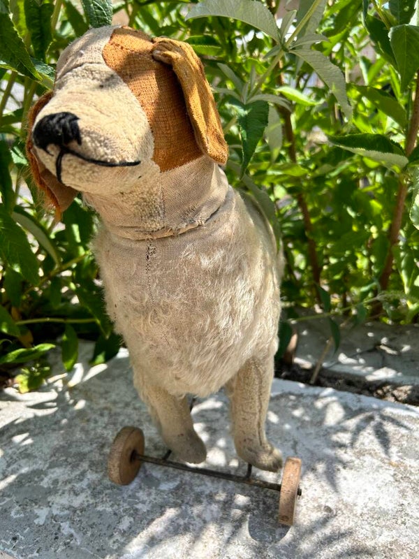Dit heerlijke, sleetse hondje op wieltjes hebben we gevonden tijdens een zoektocht in Frankrijk. Met zijn doorleefde uitstraling en authentieke details is het een ware blikvanger. Een nostalgisch stuk dat direct een glimlach op het gezicht tovert.