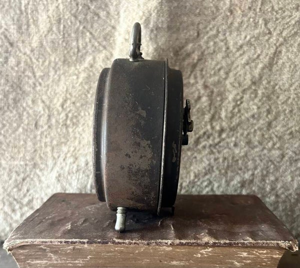 Met zijn metalen behuizing, verweerde wijzerplaat en authentieke details is deze wekker een echte blikvanger. Perfect voor op een nachtkastje, dressoir of open kast.