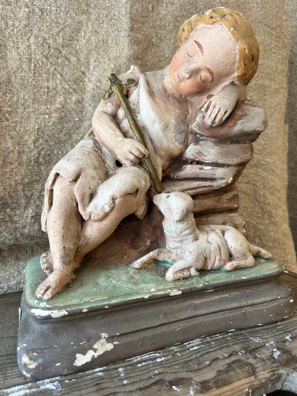 Het beeld straalt een ingetogen rust uit en past perfect in een landelijk interieur, vintage setting of meditatieve hoek. Of je nu verzamelaar bent van religieuze objecten of gewoon houdt van items met een ziel: dit stuk heeft een unieke uitstraling die niet te reproduceren is.