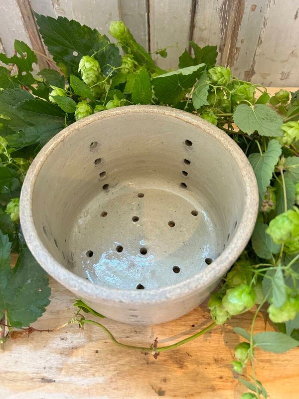 Deze originele Franse kaasmal van gres straalt eenvoud en karakter uit. Met zijn mooie, natuurlijke tint en subtiele patina past hij perfect in een landelijk, brocante of sober interieur.