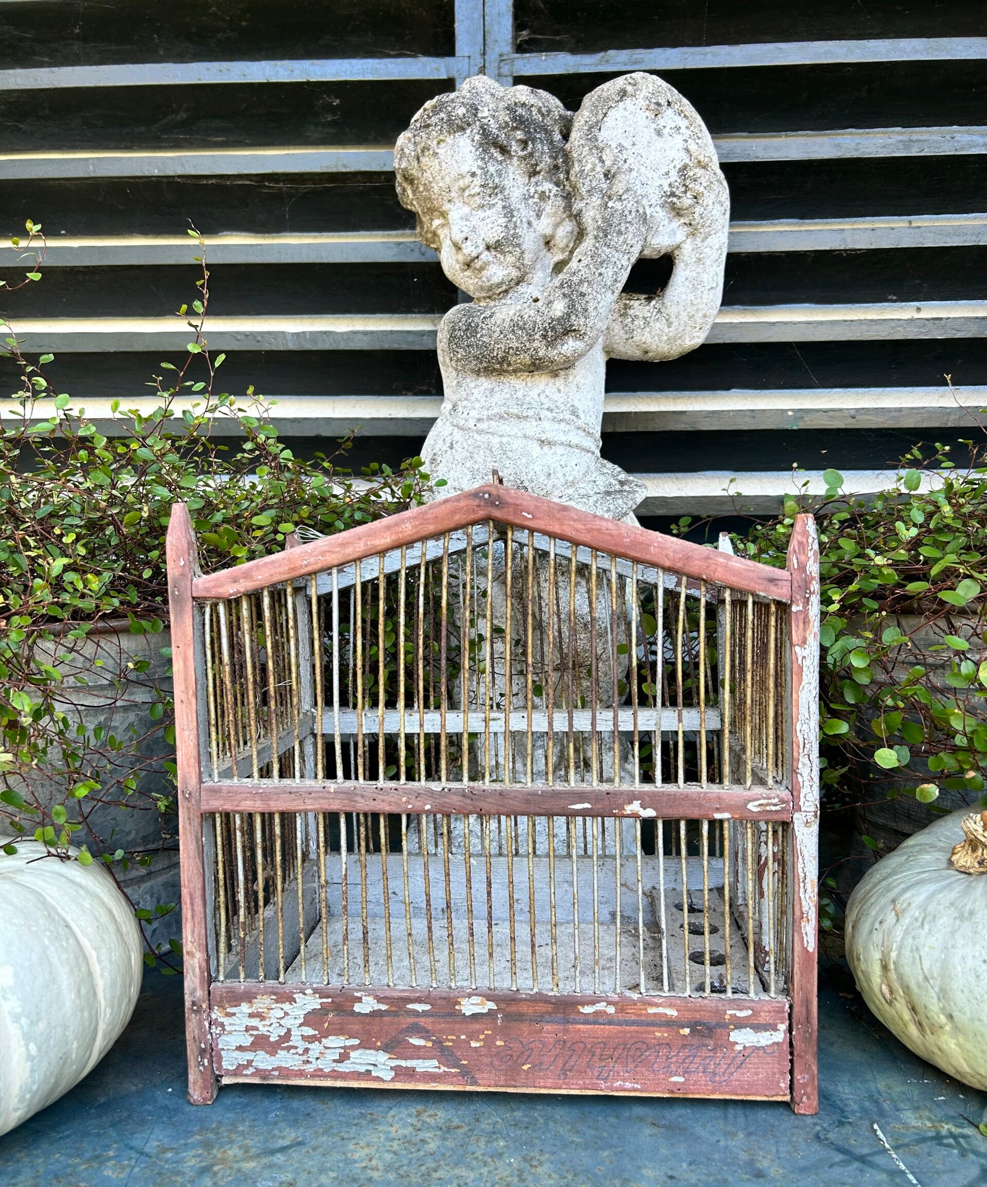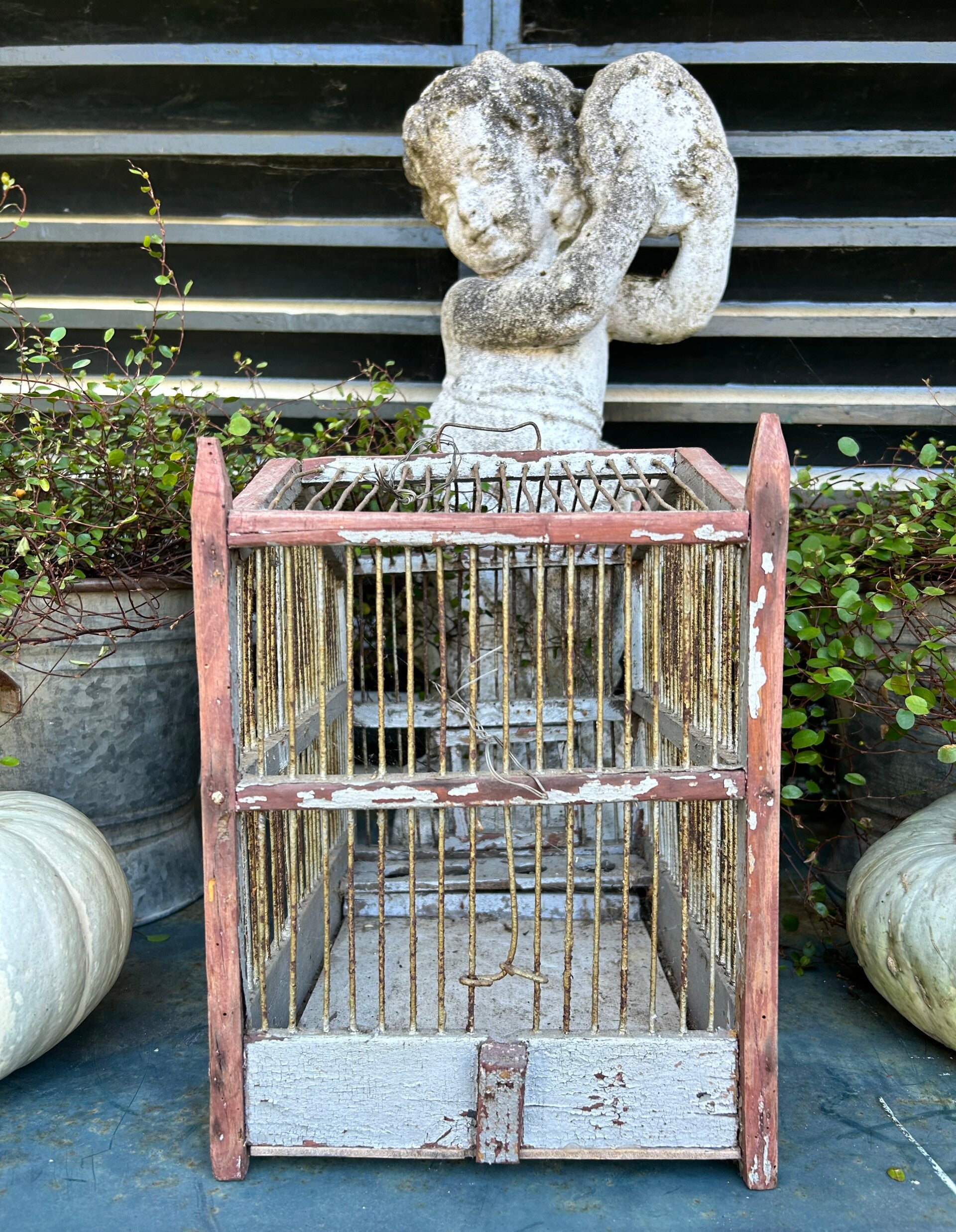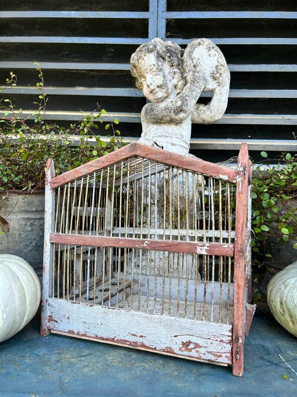 Breng karakter en charme in je interieur met deze unieke, sleetse vogelkooi. De natuurlijke verwering en prachtige patina geven dit stuk een doorleefde uitstraling die perfect past in een brocante, landelijke of vintage setting.