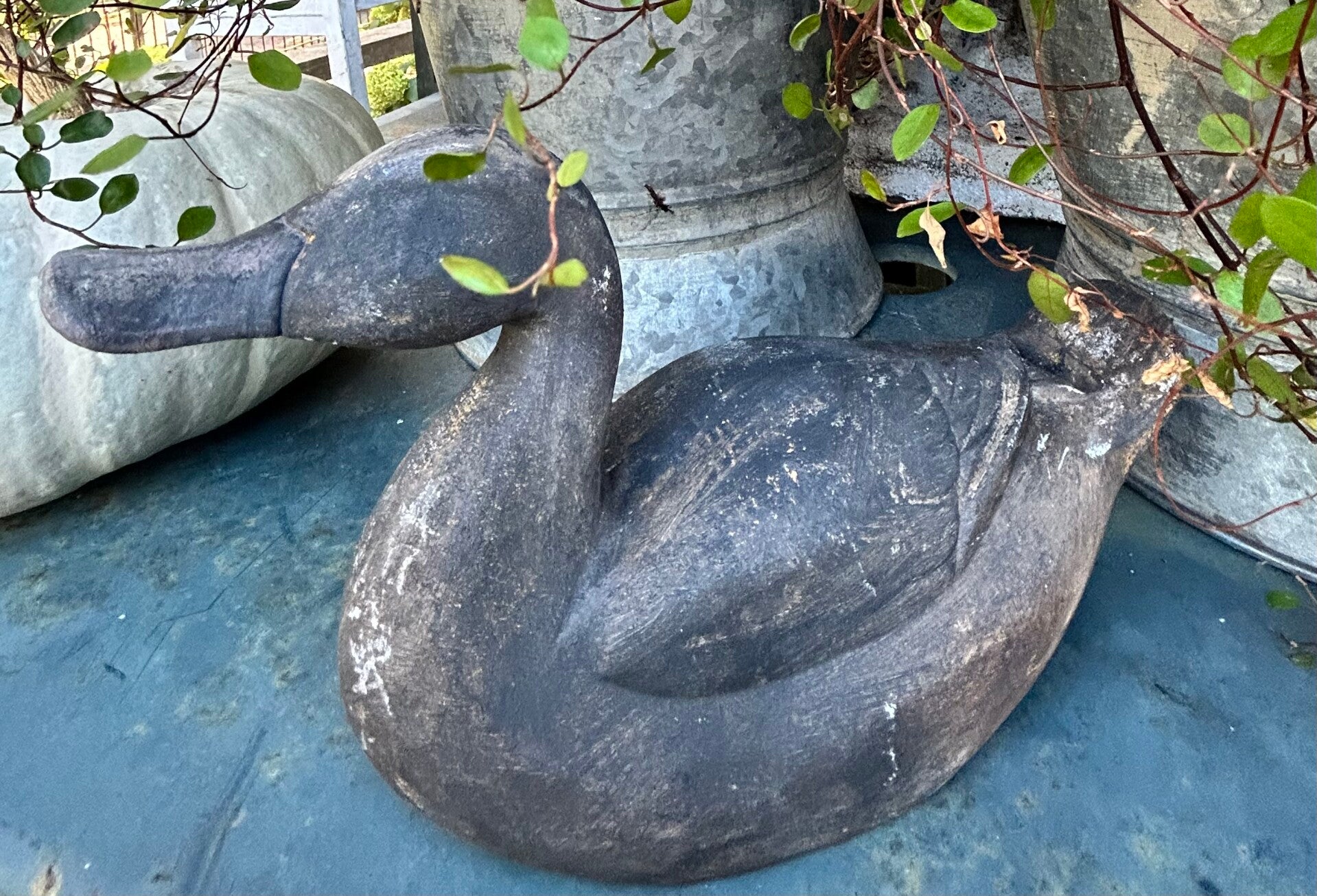 Zwart geverfd houten eend