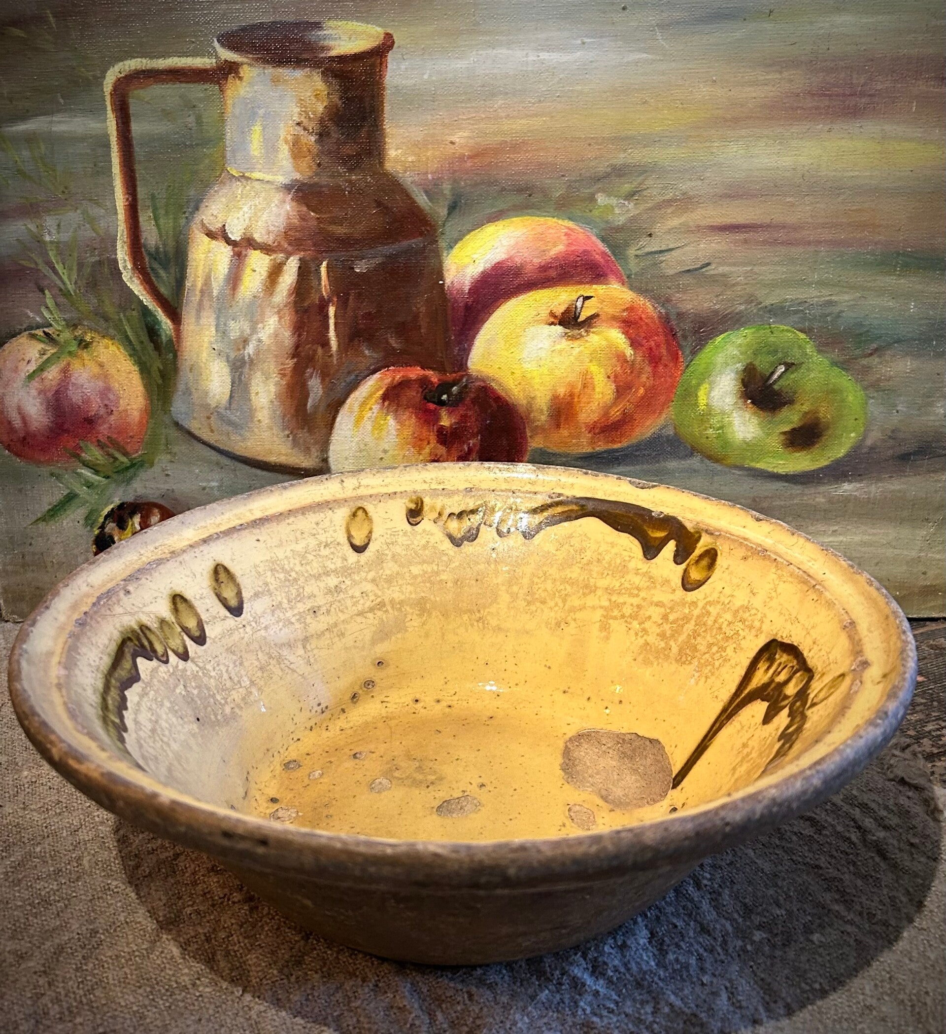 Unieke aardewerken schaal met een warme gele glazuur aan de binnenzijde. Deze schaal heeft een prachtig doorleefd karakter en draagt de charme van vroeger met zich mee. Met haar oorsprong in Frankrijk brengt ze een authentiek stukje ambacht en geschiedenis in huis.