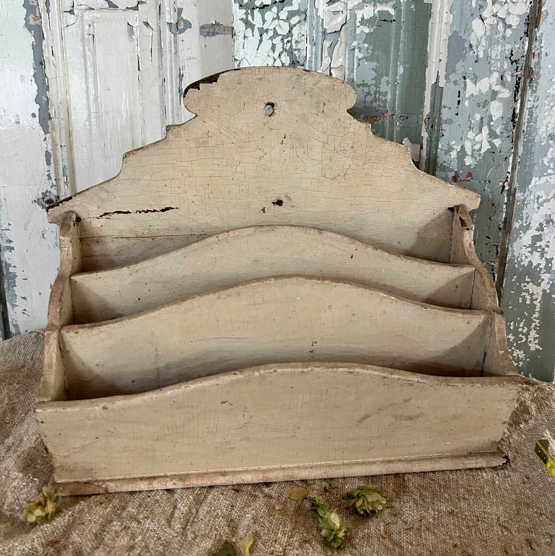 Prachtig houten brievenbakje met een sleets, doorleefd karakter en een mooie naturel patina.