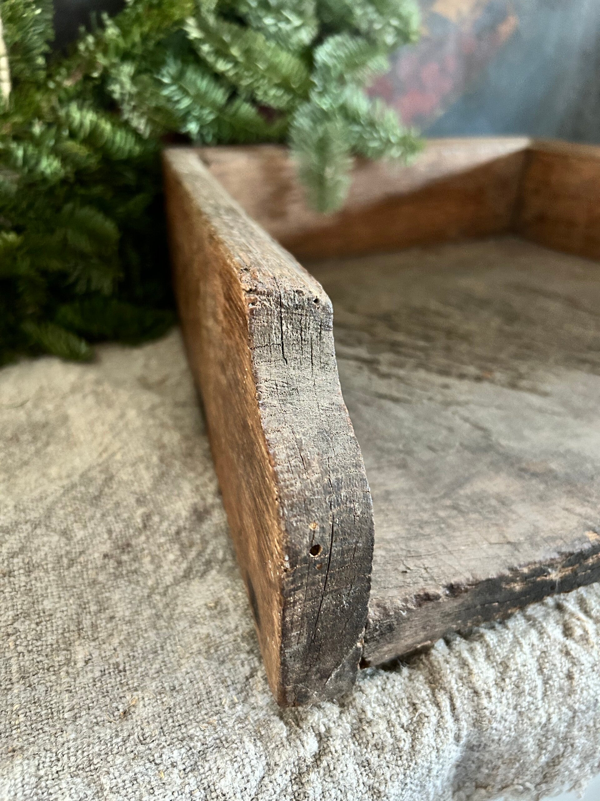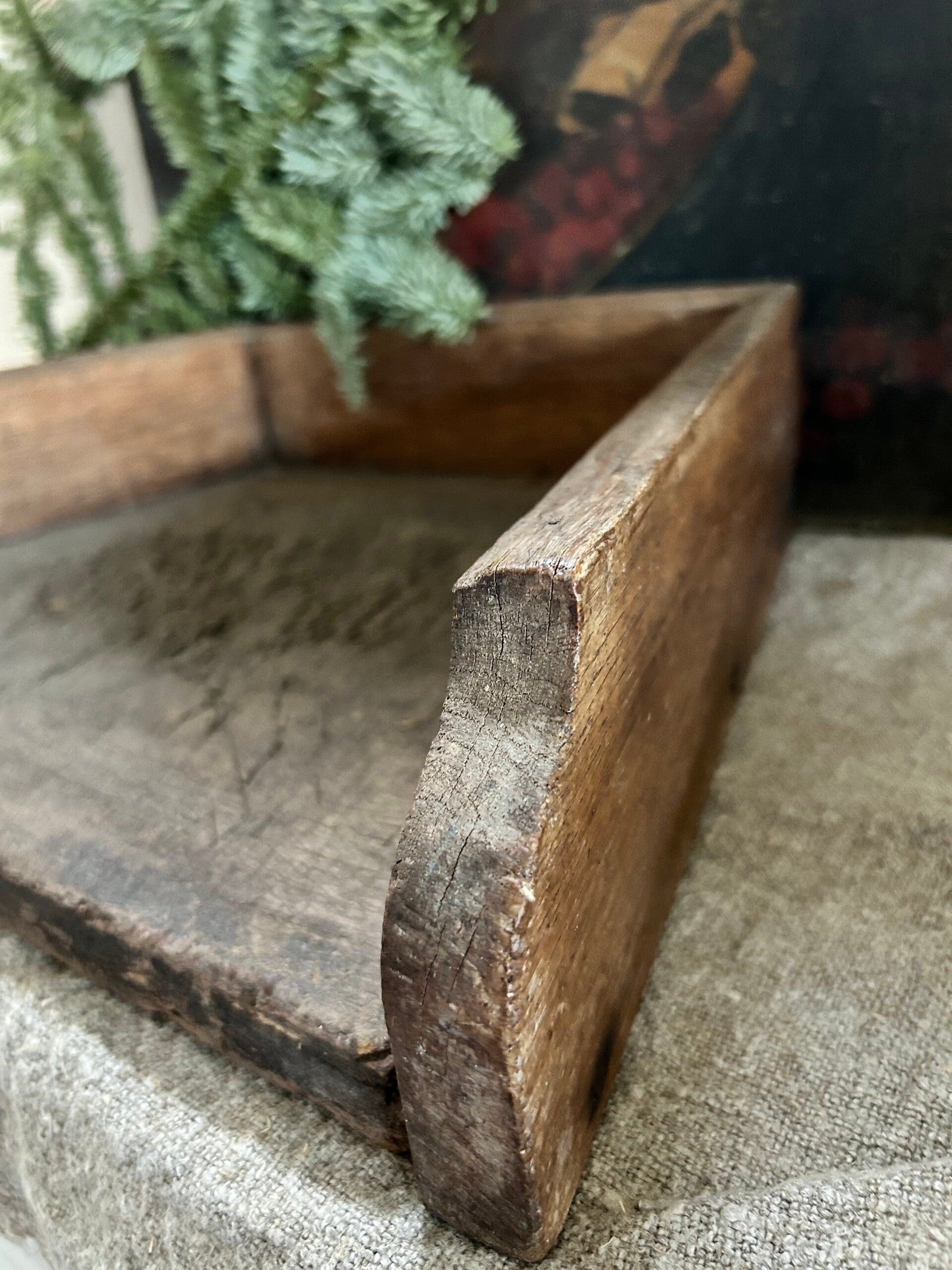 Karaktervolle, doorleefde snijbak met een prachtige landelijke uitstraling. Het hout toont precies de juiste sporen van tijd en gebruik, wat dit stuk zo bijzonder maakt in een brocante interieur. Mooi als decoratief object op tafel of in de keuken.