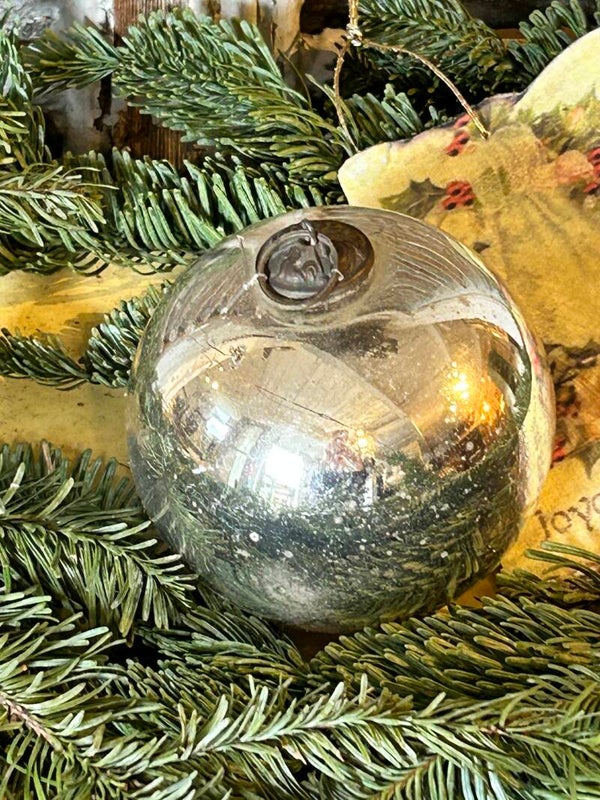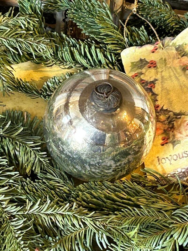 Decoratieve heksenbal met een verweerde zilveren finish. Ideaal als sfeervol accent in je interieur.