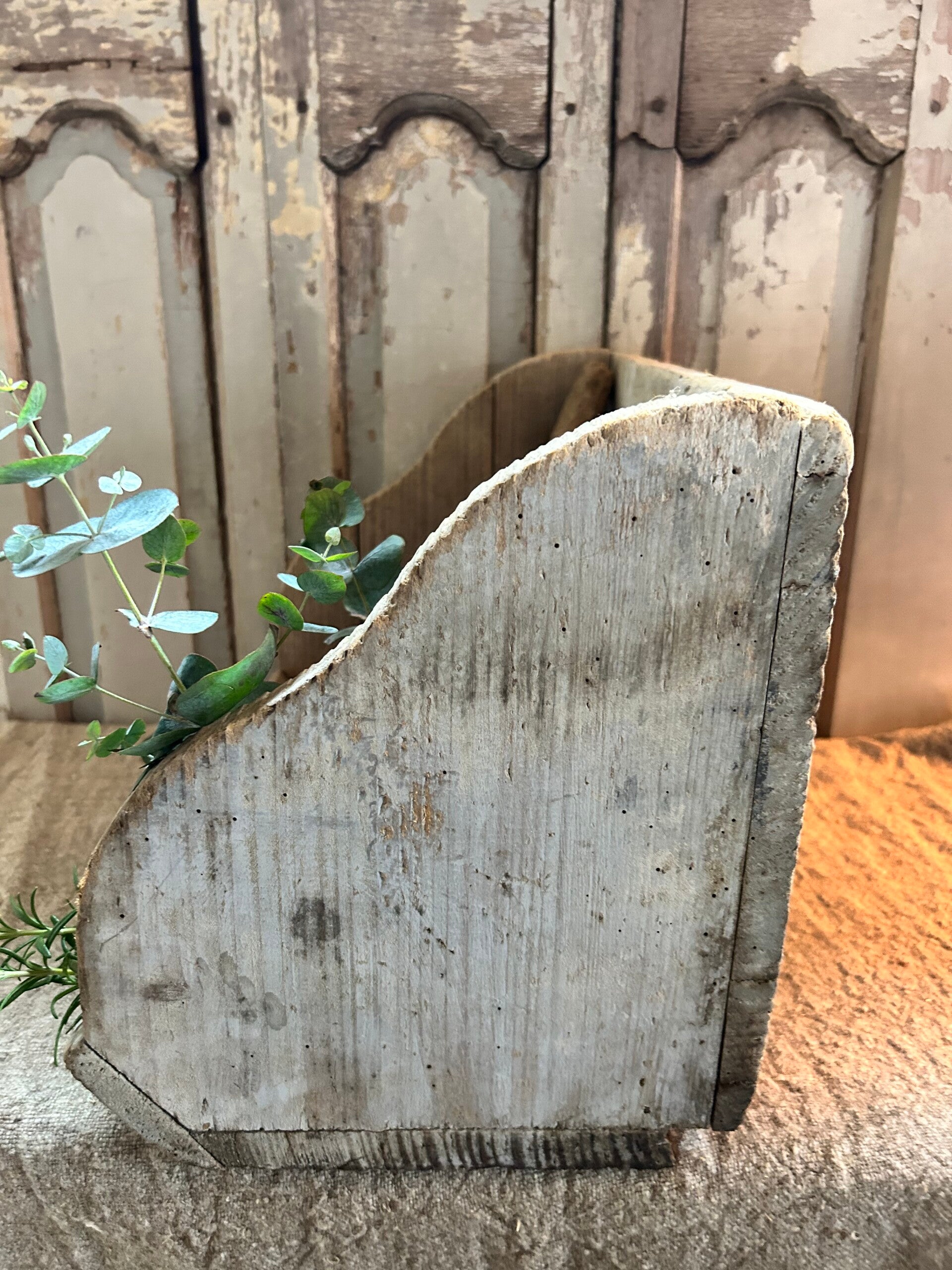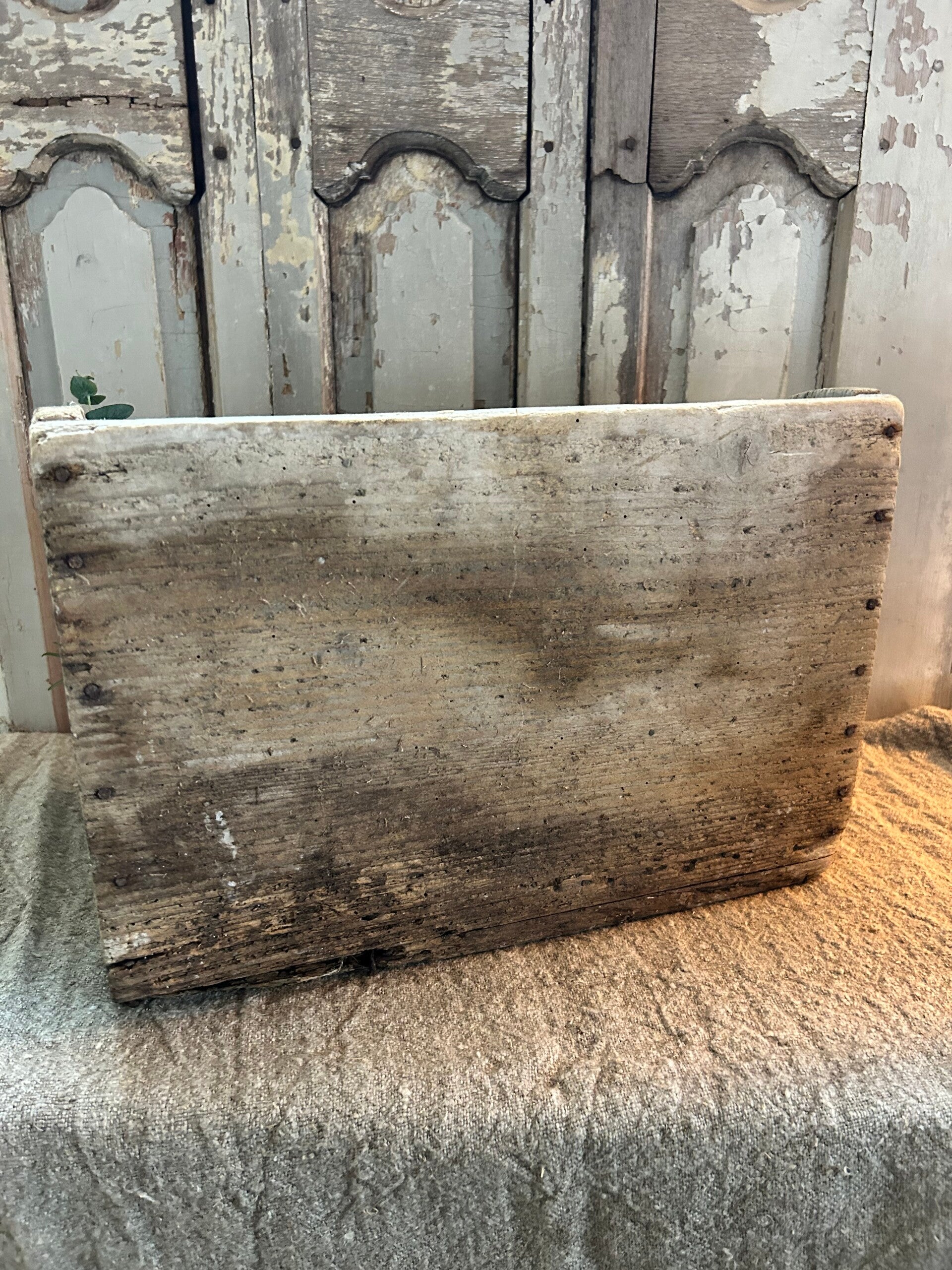 Prachtige doorleefde houten knielbak uit Frankrijk met een authentieke, robuuste uitstraling. Door het gebruik en de tijd heeft deze bak een mooi patina gekregen, wat zorgt voor extra karakter. Mooi als decoratief item of praktisch te gebruiken als opberger in een landelijk of brocante interieur.