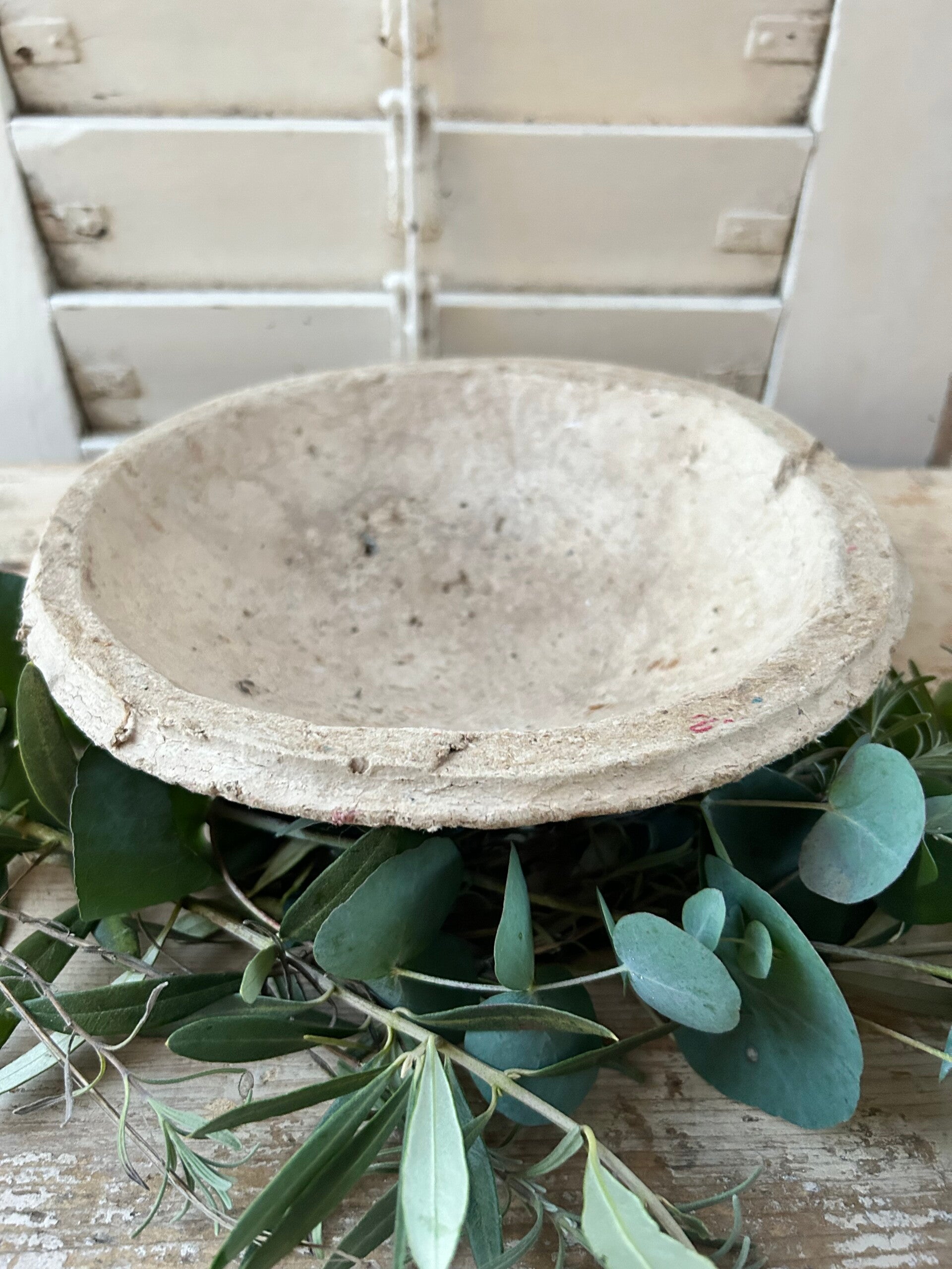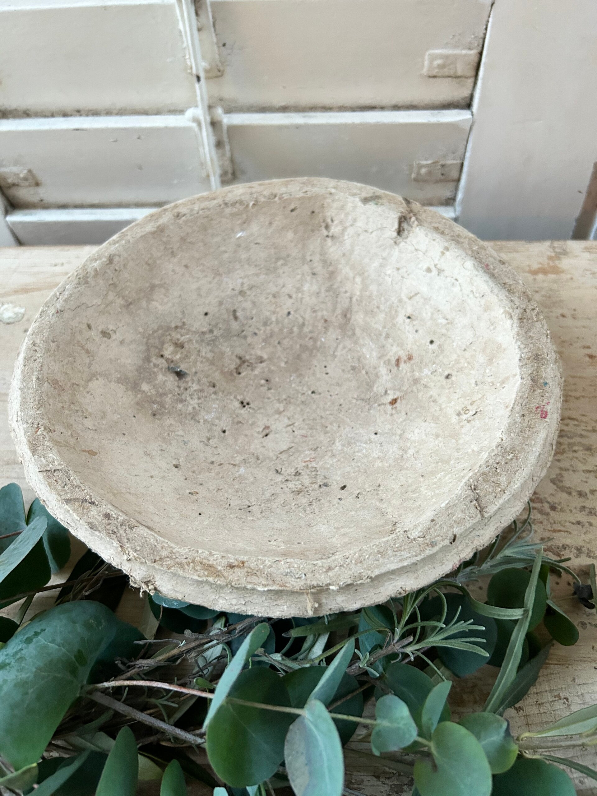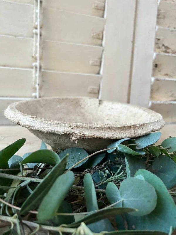 Handgemaakte decoratieve schaal van papier-mâché met een natuurlijke, rustieke uitstraling. Elke schaal is uniek door kleine oneffenheden en kleurvariaties. Mooi als stylingobject op tafel of kast. Uitsluitend geschikt voor decoratief gebruik.