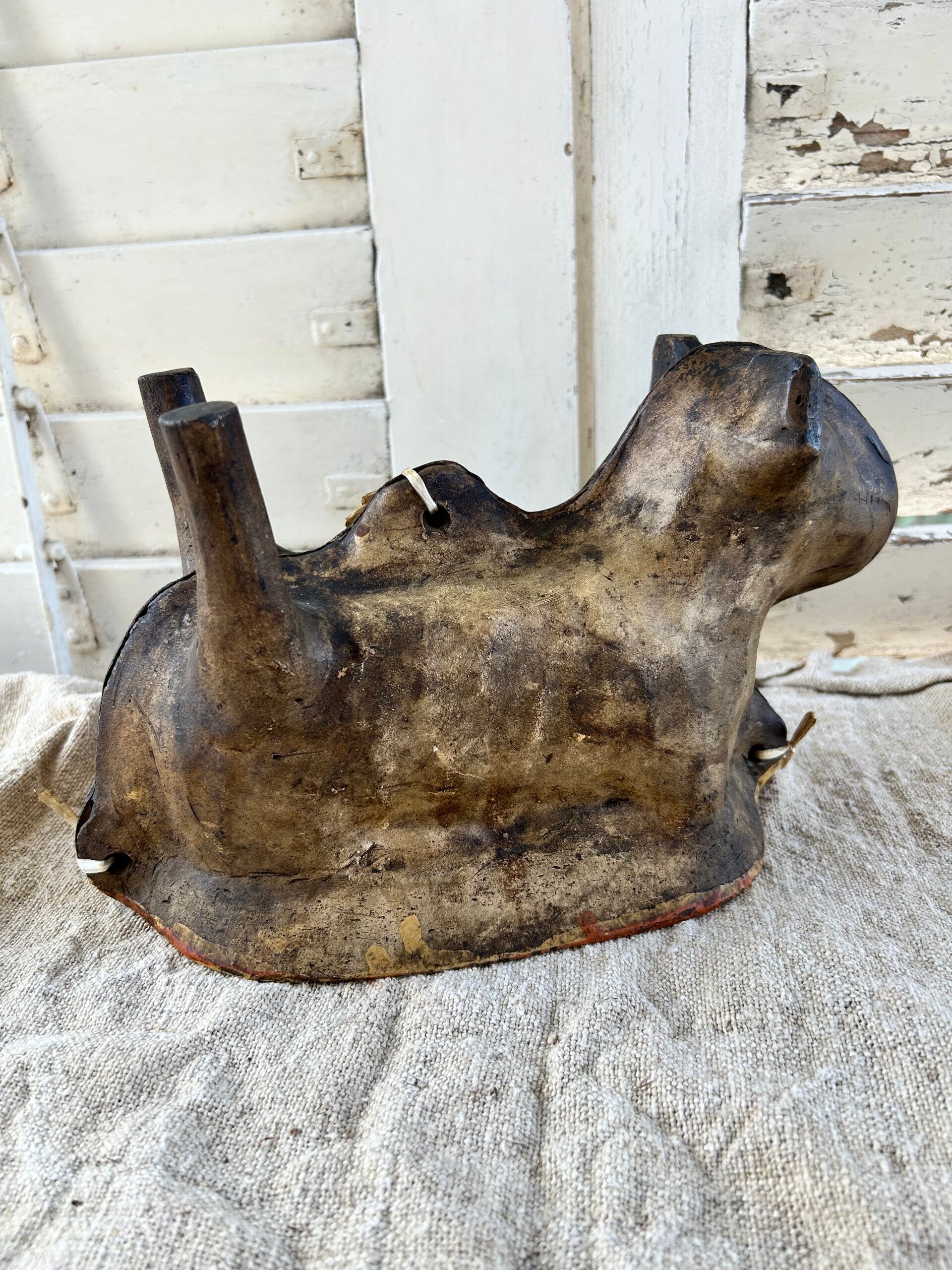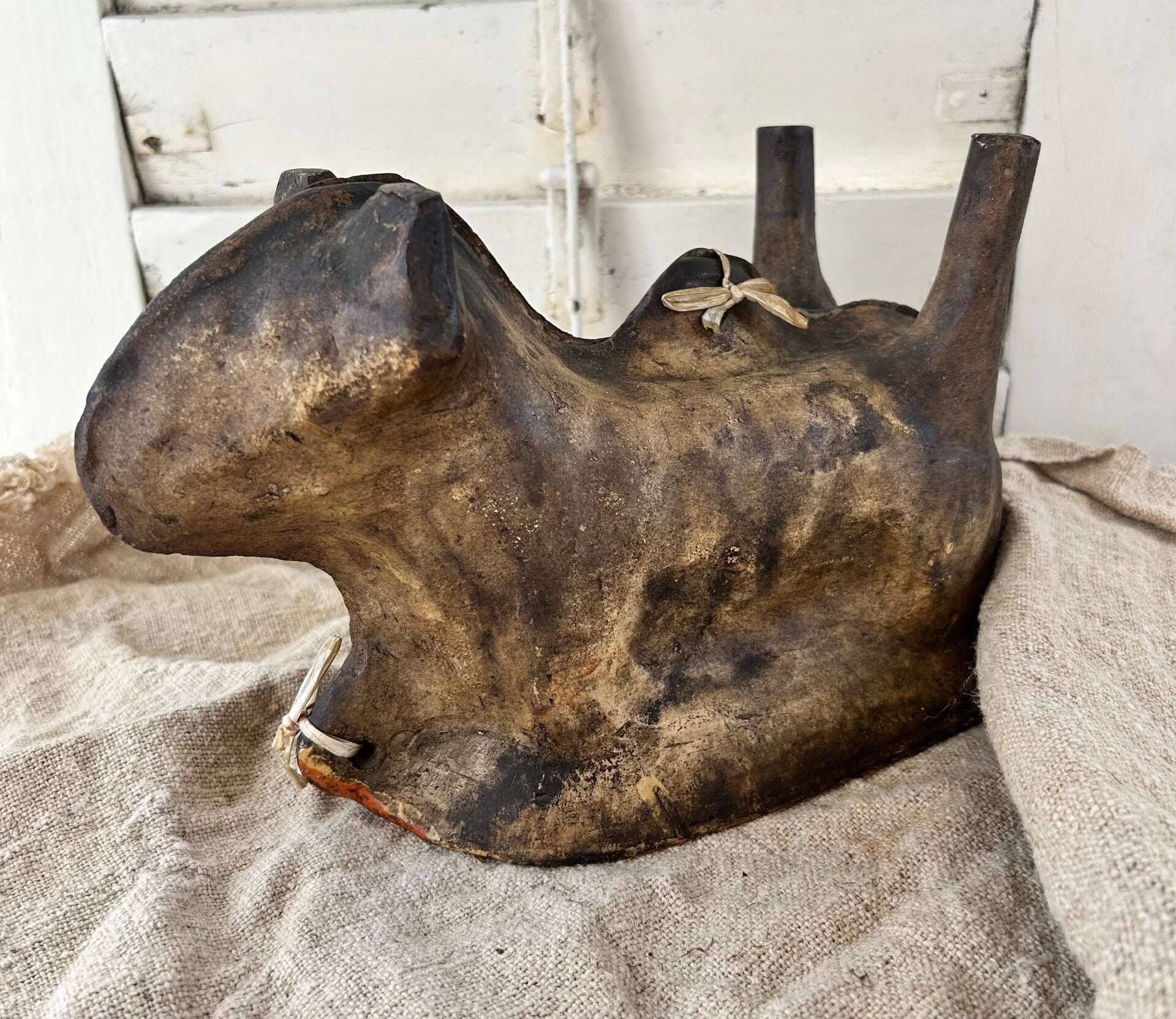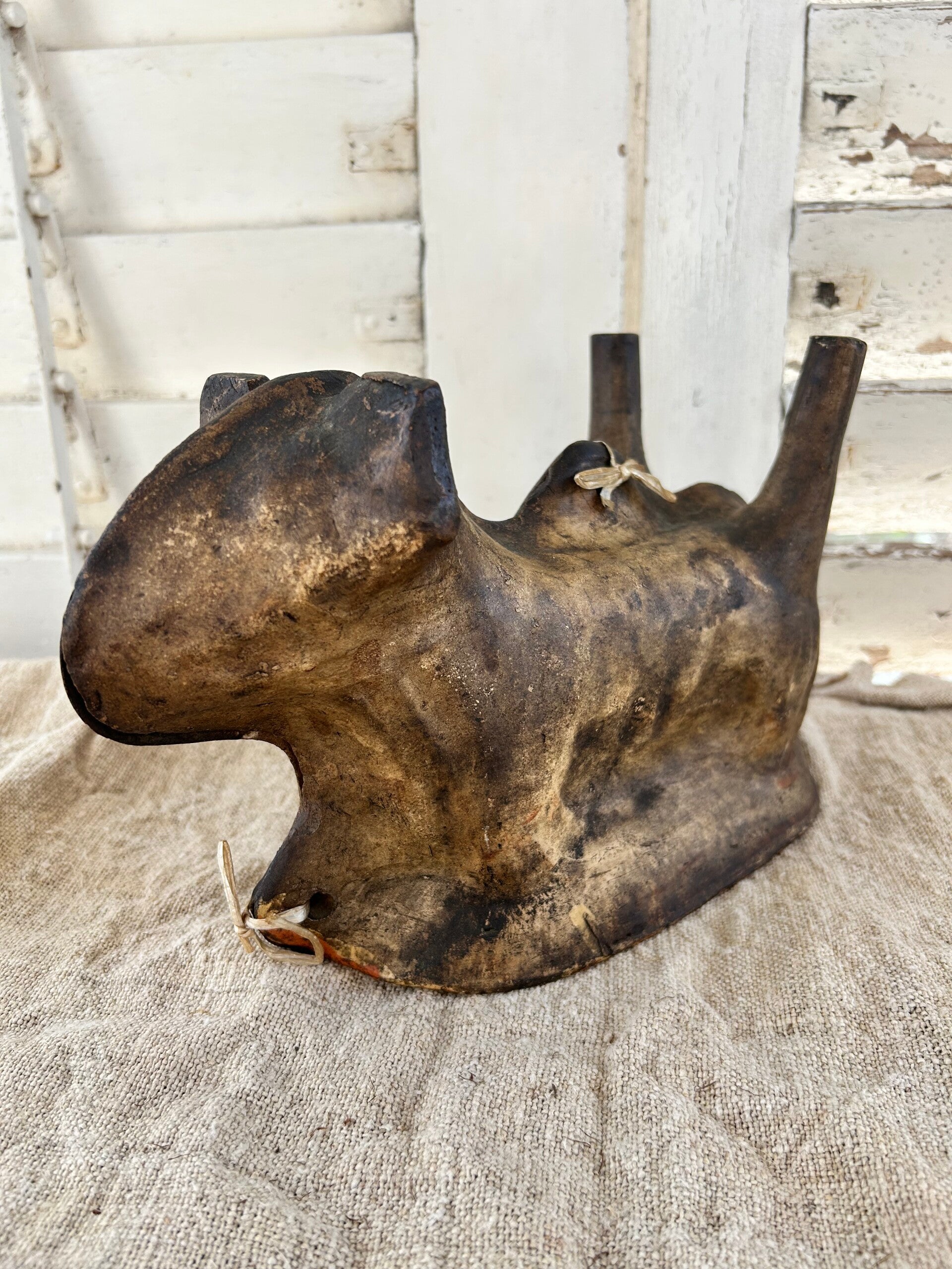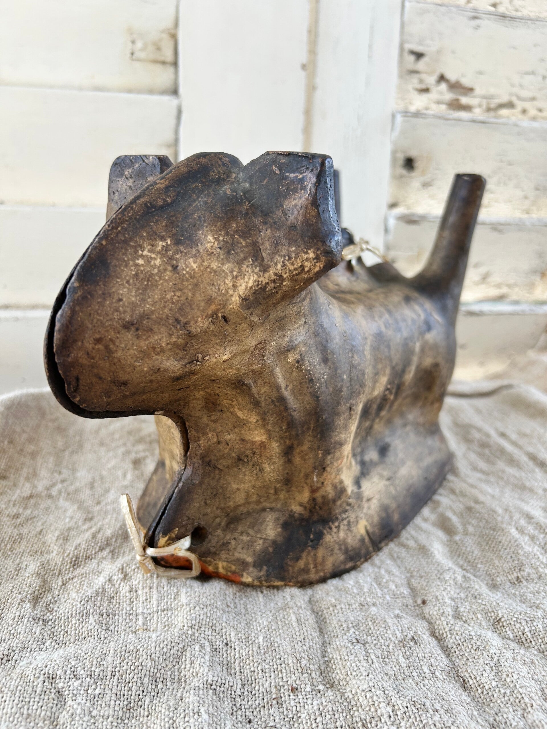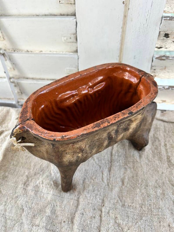 Authentiek aardewerk bakvorm in de vorm van een lam, traditioneel gebruikt om feestelijke cake in te maken. Dit exemplaar heeft een mooie, doorleefde uitstraling met een warme patina die het zijn karakter geeft. Een bijzonder stuk dat zowel functioneel als decoratief is – perfect voor liefhebbers van brocante en landelijke charme.